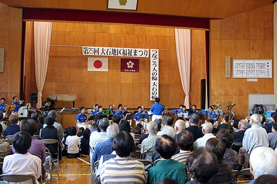 最高齢者表彰やシルバー保安官への感謝状贈呈、大石小学校児童による福祉学習の発表、久留米広域消防音楽隊による演奏と火災予防等への注意喚起、福祉施設による物販、手工芸品の展示等様々な催しがありました。